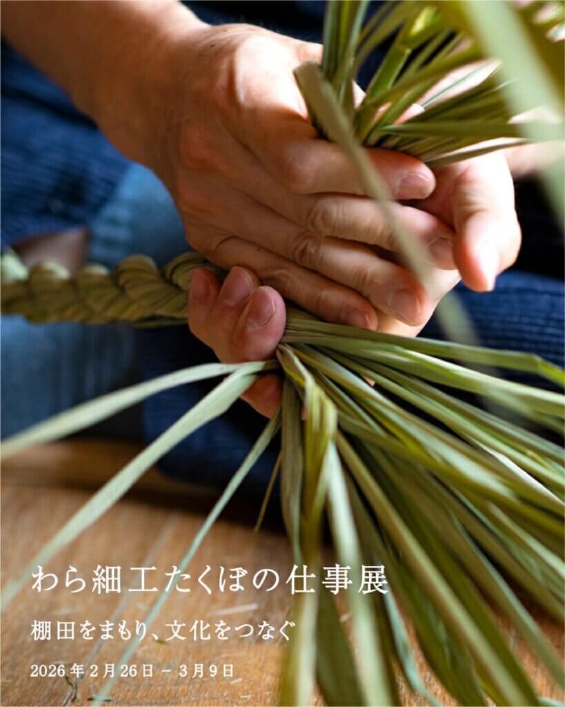 今回で記念すべき10回目となる今展では、定番・新作の商品の展示販売に加えて、わら細工たくぼのものづくりの根本にある棚田に焦点を当ててお伝えできる機会にしたいと思っています。