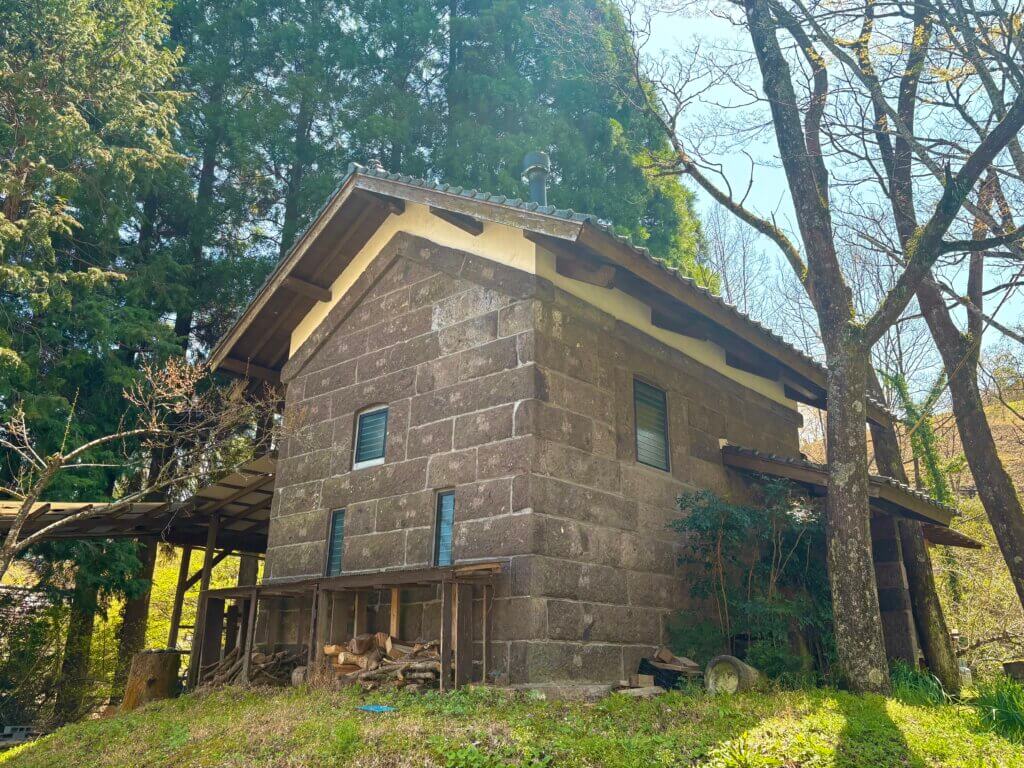 高千穂町の中心部から天岩戸神社に向かう途中、棚田の美しい景観が広がる道の高台に150年ほどの歴史をもつ石蔵「千人の蔵」があります。