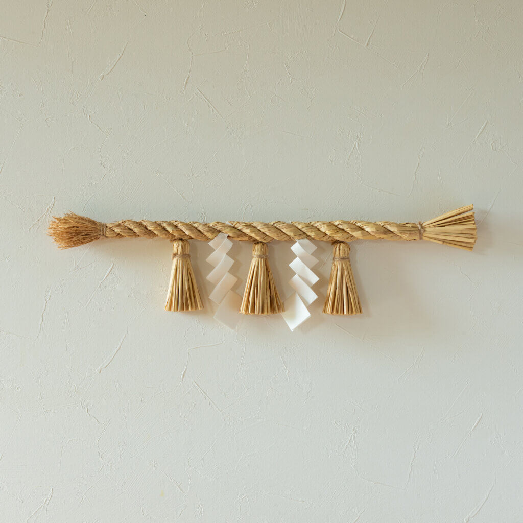 太い縄に房を紙垂を付けたしめ縄が作れます。ゴボウ締めと呼ばれるしめ縄の基本的な形です。